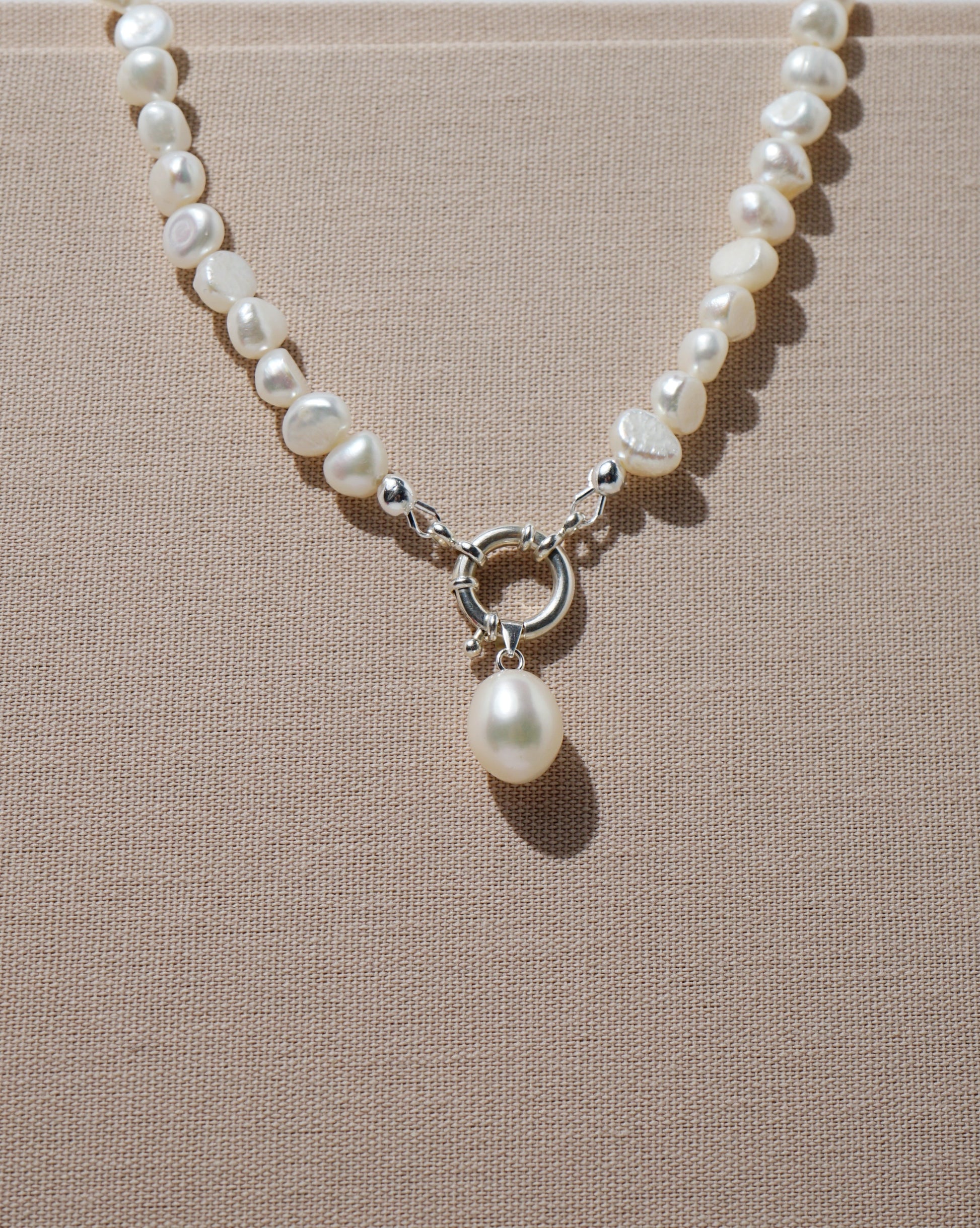 Elevate your everyday elegance with this handcrafted silver pearl necklace, designed for effortless versatility. Each natural freshwater pearl is individually strung, showcasing organic shapes, soft iridescence, and the unique character only real pearls can offer.
