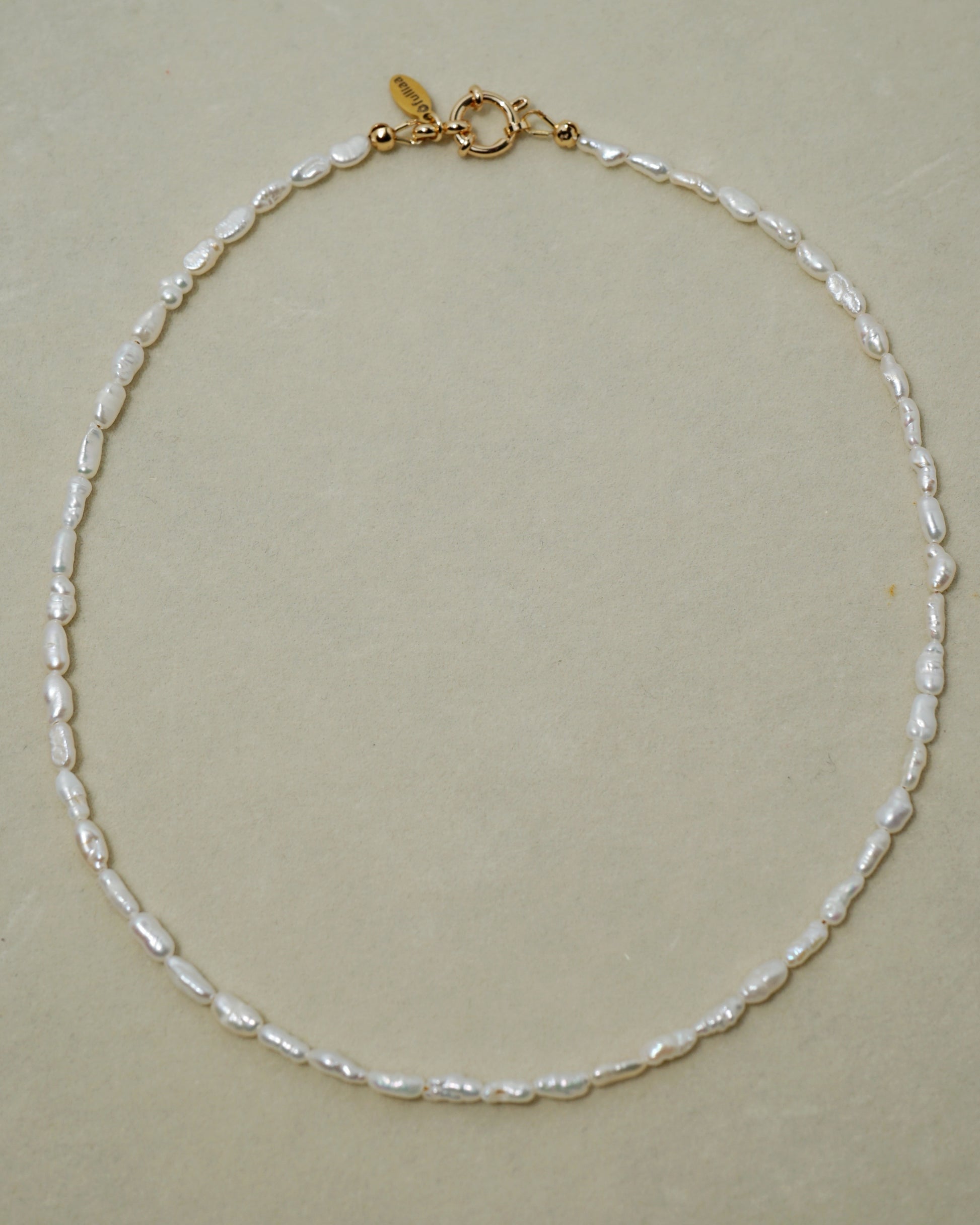 Elevate your everyday look with timeless sophistication. This delicate necklace is crafted from tiny natural stick pearls, each with its own organic shape that captures the effortless elegance of Istanbul’s modern charm.